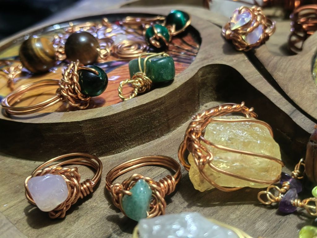 I became interested in wire wrapping and jewellery making a few years ago when I was thinking of artistic and unique ways to keep or display my crystals and gemstones. The thought of adding crystals and gems to my holistic wellness line had always been playing around in my mind, and eventually I started actively buying gemstones in January 2022 leading up to me starting AURA in the same year.
